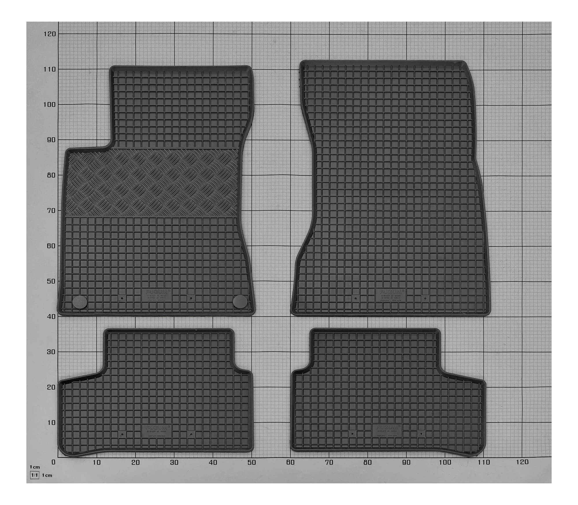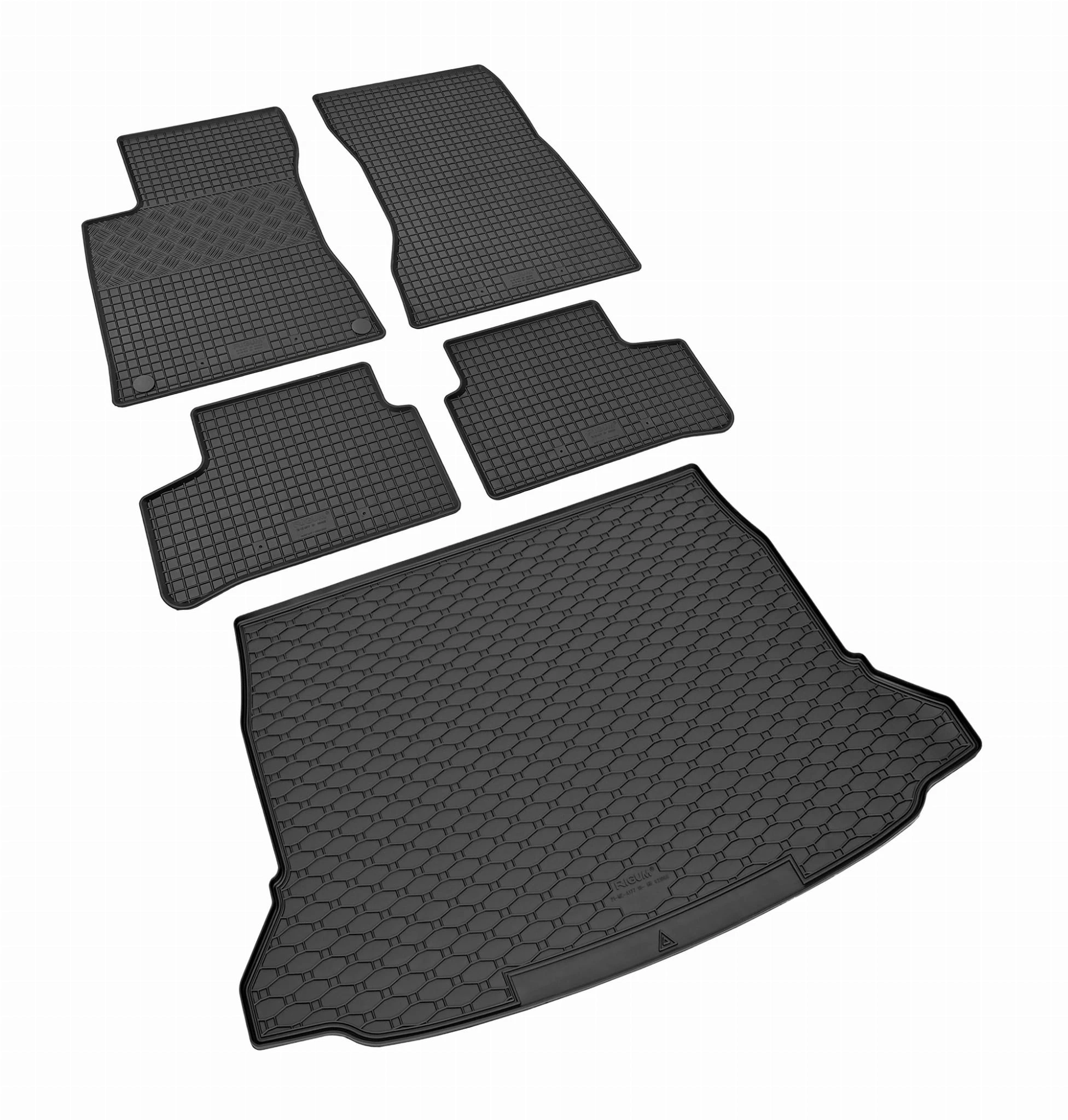 Zestaw zawiera: 4 pojedyncze maty gumowe + 1 pojedyncza mata bagażnikowa