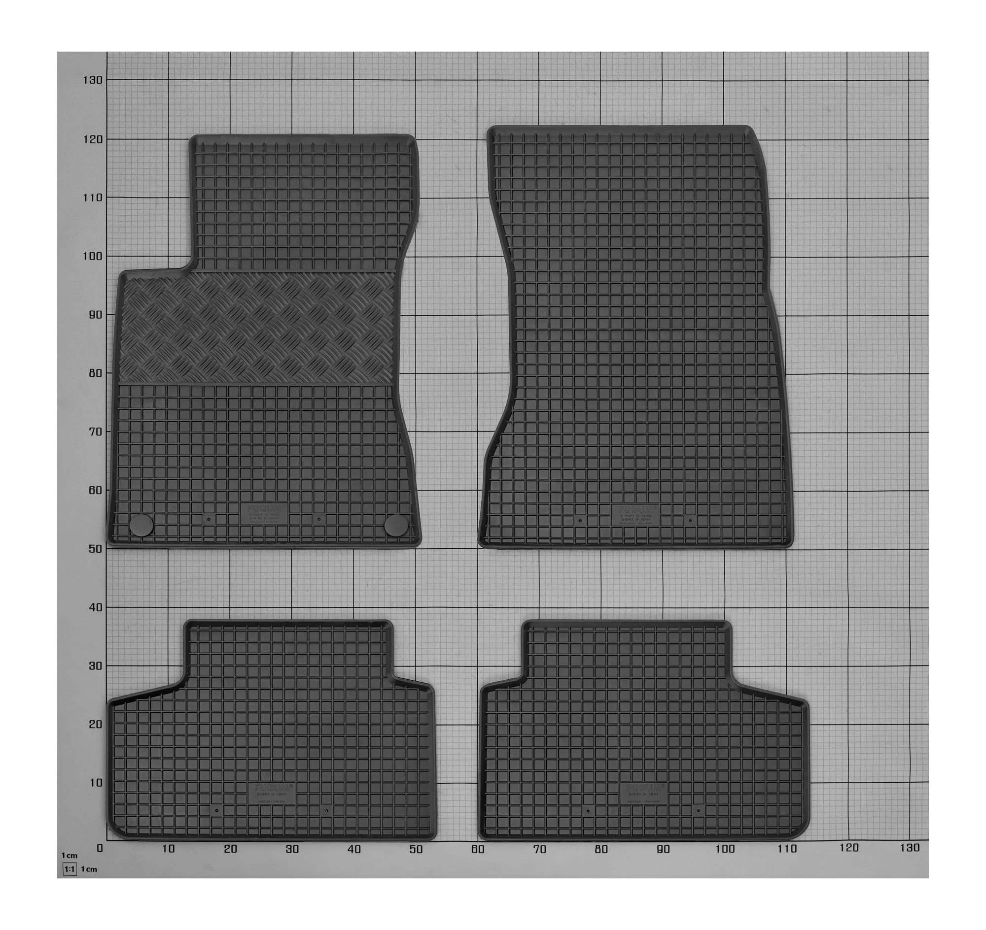 Zestaw zawiera: 4 pojedyncze maty gumowe + 1 pojedyncza mata bagażnikowa
