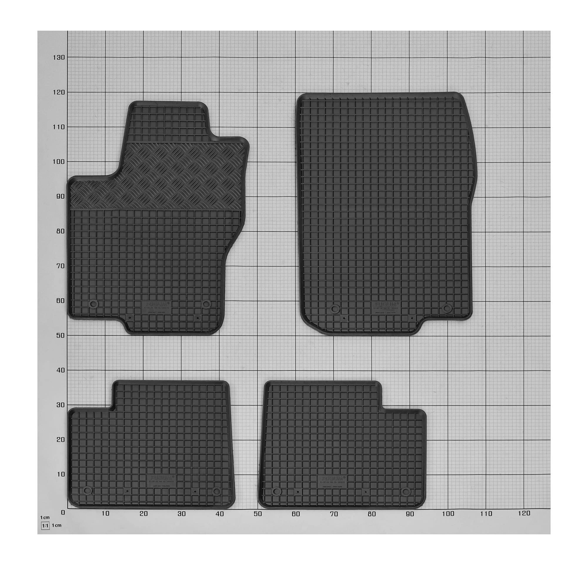 Zestaw zawiera: 4 pojedyncze maty gumowe + 1 pojedyncza mata bagażnikowa