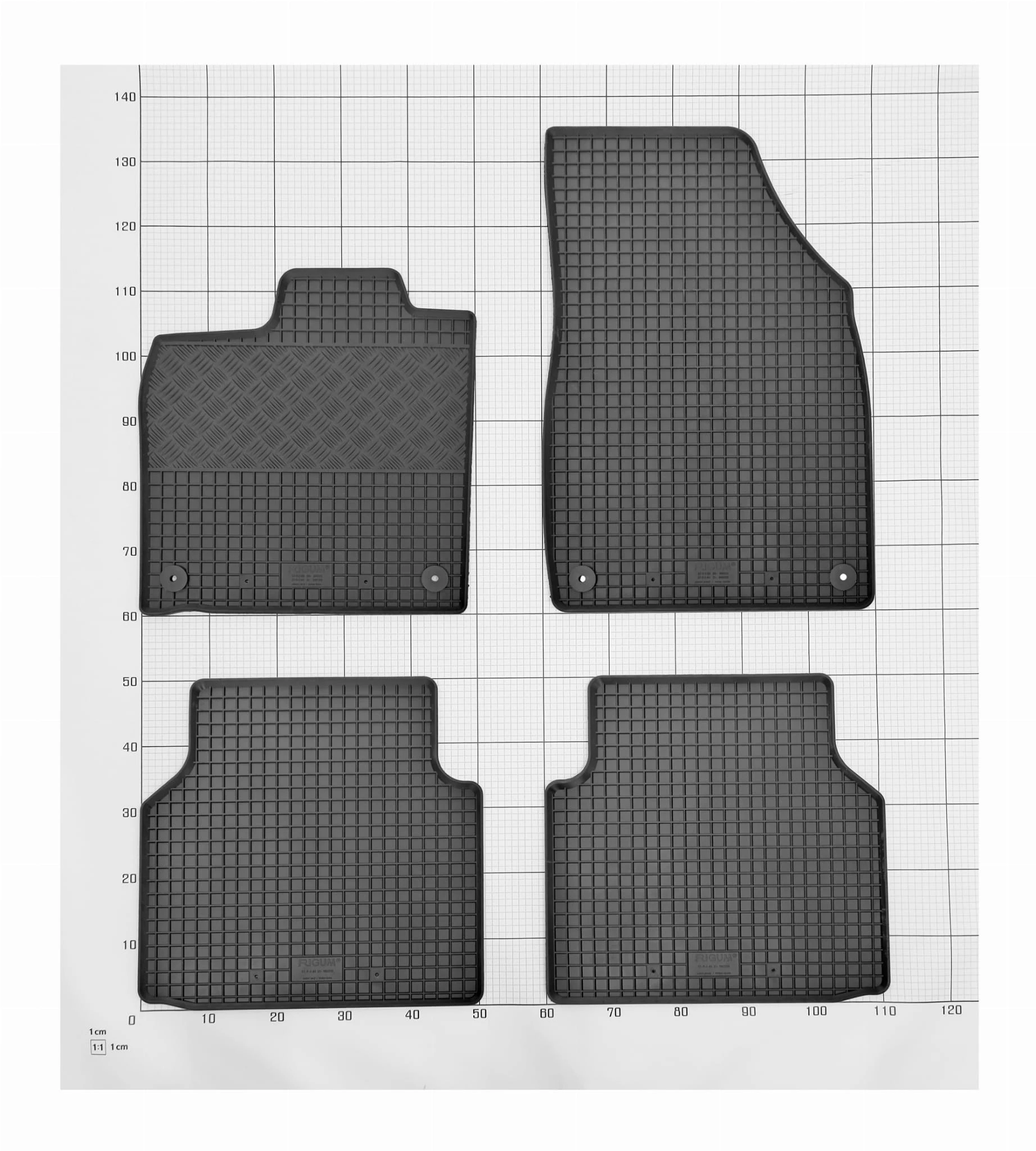 Zestaw zawiera: 4 pojedyncze maty gumowe + 1 pojedyncza mata bagażnikowa
